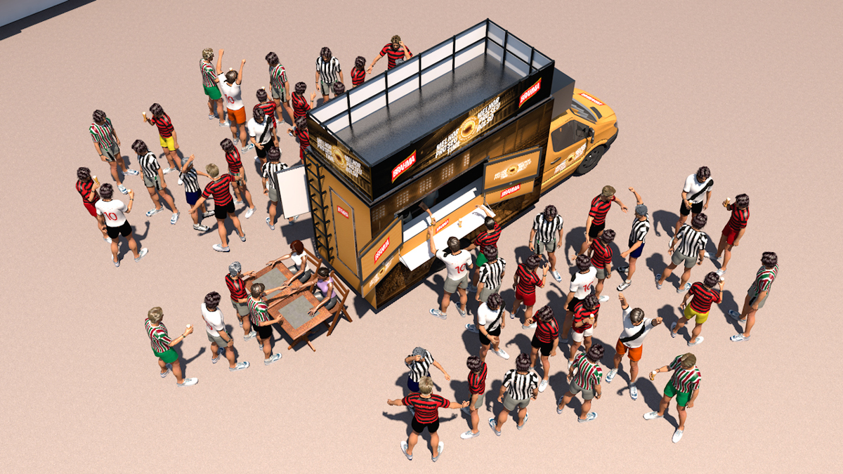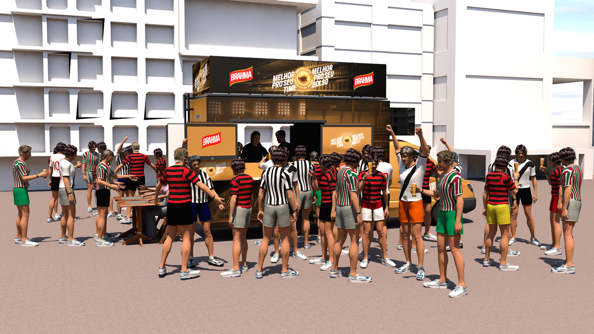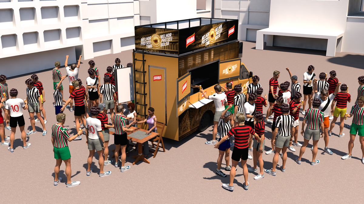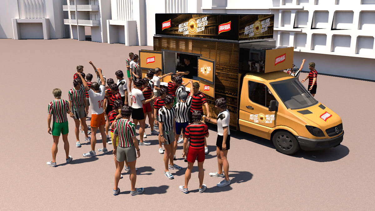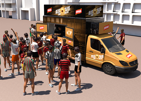 Beer truck para empresa de bebidas AMBEV para posicionamiento en entradas de estadios de fútbol.